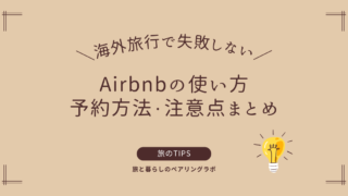 旅のTIPS 【初心者向け】海外個人旅行で失敗しないAirbnbの使い方|予約方法・注意点まとめ 個人で海外旅行をするのが好きな方向けに、Airbnbの使い方からメリット・デメリット、実際にあったトラブル、利用する際の注意点をまとめて解説しています。 2026.01.05 旅のTIPS
